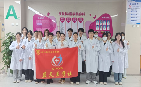 (本网讯 王丹 金鑫业)为推动医学理论知识与临床实践深度融合,拓宽学生专业视野,提升医学实践素养,4月8日下午,球友会蓝天医学社在社团指导老师王丹的带领下,前往湖北航天医院皮肤科开展专业见习活动。湖北航天医院皮肤科刘怡灵主任热情接待了社团师生,全程悉心讲解、实操示范,为学生们带来了一场干货满满的临床学习体验。