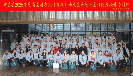 为深入贯彻中央一号文件关于“加强农民技术技能培训,壮大农村实用人才队伍”的部署要求,落实高素质农民培育计划中“聚焦粮油稳产保供”的重点任务,本次培训立足孝昌县油菜产业发展实际与生产经营主体需求,构建“综合素养 + 专业技能 + 能力拓展”三位一体培育体系。课程涵盖政策导向与市场分析、绿色高效生产技术、智慧农业装备应用、数字农业与 AI 技术园区实践等内容,邀请省市农业专家、院校教授、产业带头人现场授课,并组织学员赴鄂州、武汉等地的现代农业科技示范基地开展实地研学。