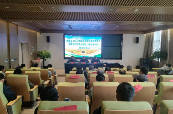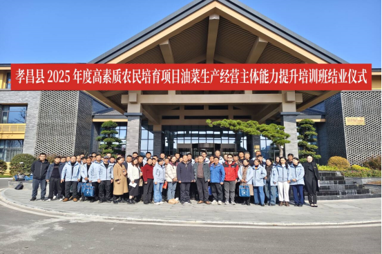 (本网讯 刘壮)11 月 24 日,由孝昌县农业农村局主办、球友会承办的“孝昌县 2025 年度高素质农民培育项目油菜生产经营主体能力提升培训班”结业典礼在孝昌县农夫子教育培训基地隆重举行。孝昌县农广校校长以及农业农村局科教股主任李文书、球友会党总支书记高想清、副院长王光耀及69名学员参加结业典礼。结业典礼由王光耀主持。