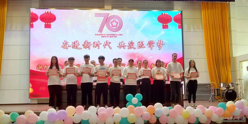 在庄严的国歌声中,开学典礼正式拉开帷幕。全体新生庄严宣誓,集体诵读医学生誓词。2018级临床医学专业学生代表毛佳泓分享了到校一年的学习和成长经历,鼓励在座新生要谨遵校训,规划属于自己的“大学之道”。2019级新生代表叶滢滢表达了积极践行社会主义核心价值观,争做社会主义事业接班人的决心。教师代表王丹老师谆谆嘱托,教导新生要把握学习机会,坚持理想,怀抱希望。球友会副书记程曙文宣读表彰文件,授予201803103等7个班级“优秀班集体”,张艳等151同学“优秀班干部”、“优秀学生”荣誉称号,并颁发了荣誉证书。
