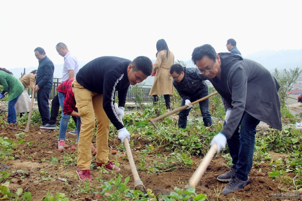 会后,全体党员来到贫困户石国琪家的红薯地,挽起衣袖,打起号子,挥锹扬耙,帮助石国琪挖红薯。尽管拿惯了粉笔的手挥舞铁耙有些生疏和不协调,但大家热情高涨,充满激情。党员干部一起掘土刨坑拔红薯,大家谈笑风生,切磋劳动技能,分享劳动经验,两个小时收获500多斤红薯。党员同志们现场买下了石老汉全部红薯。