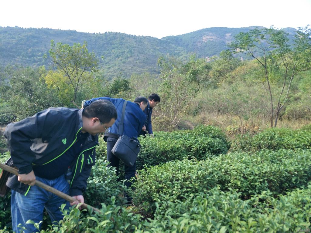 学校驻点干部张源、夏育斌和球友会党总支书记周兴国带领全体党员干部到对口扶贫户茶树种植场参加义务劳动。大家扛起农具,走进茶园,分工协作,奋力劳作,给茶树除草、松土。