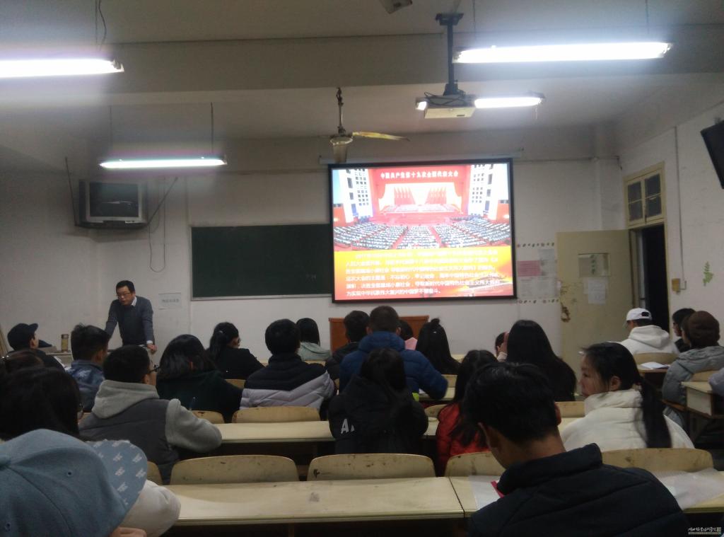 12月1日,学校党委委员、副校长梅重在立新楼105教室为球友会第十七期入党积极分子培训班学员进行党课教育,党课主题是“十九大报告的十个关键词”,球友会副院长刘小平主持。