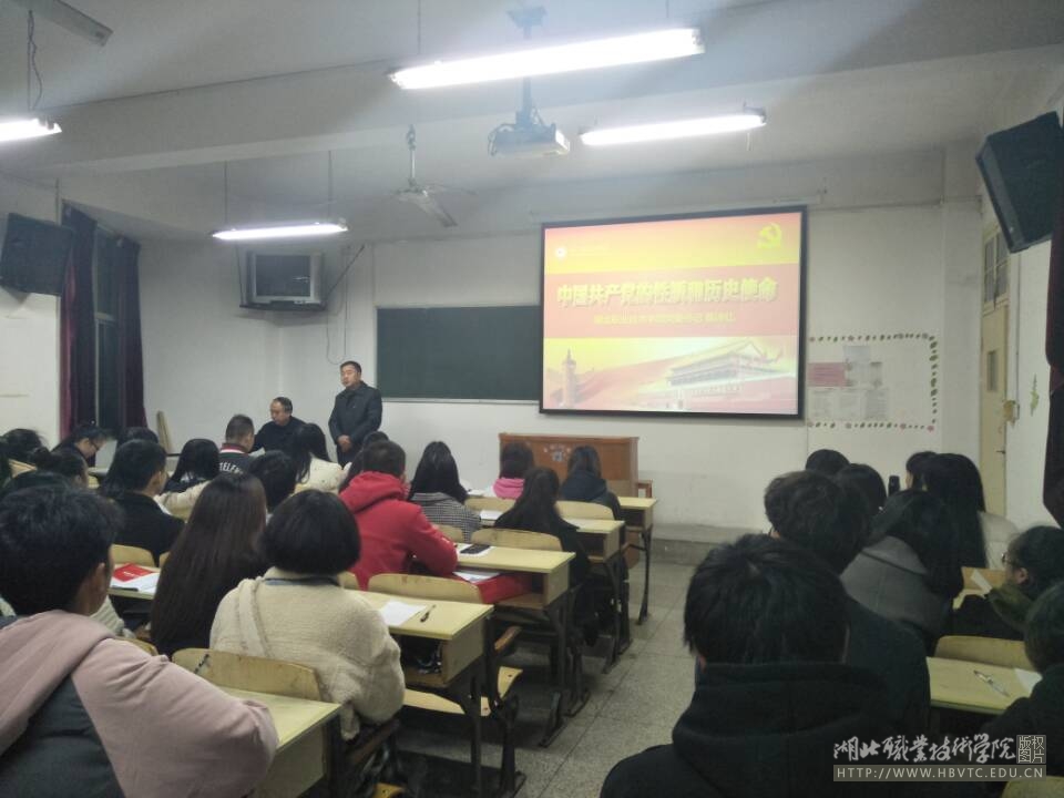 11月29日,学校党委书记蔡诗红在立新楼105教室为球友会第十七期入党积极分子作了题为“中国共产党的性质和历史使命”的党课专题报告,球友会党总支书记周兴国主持。